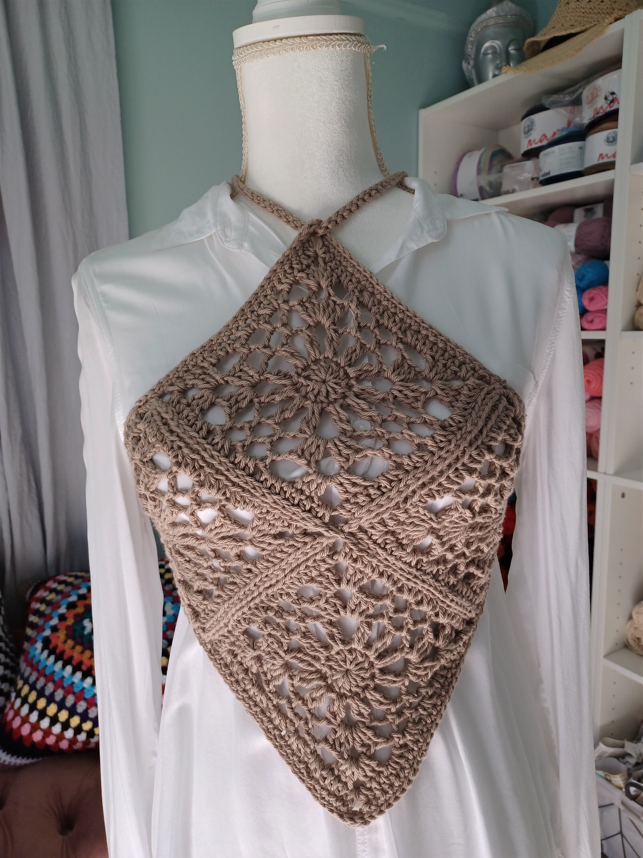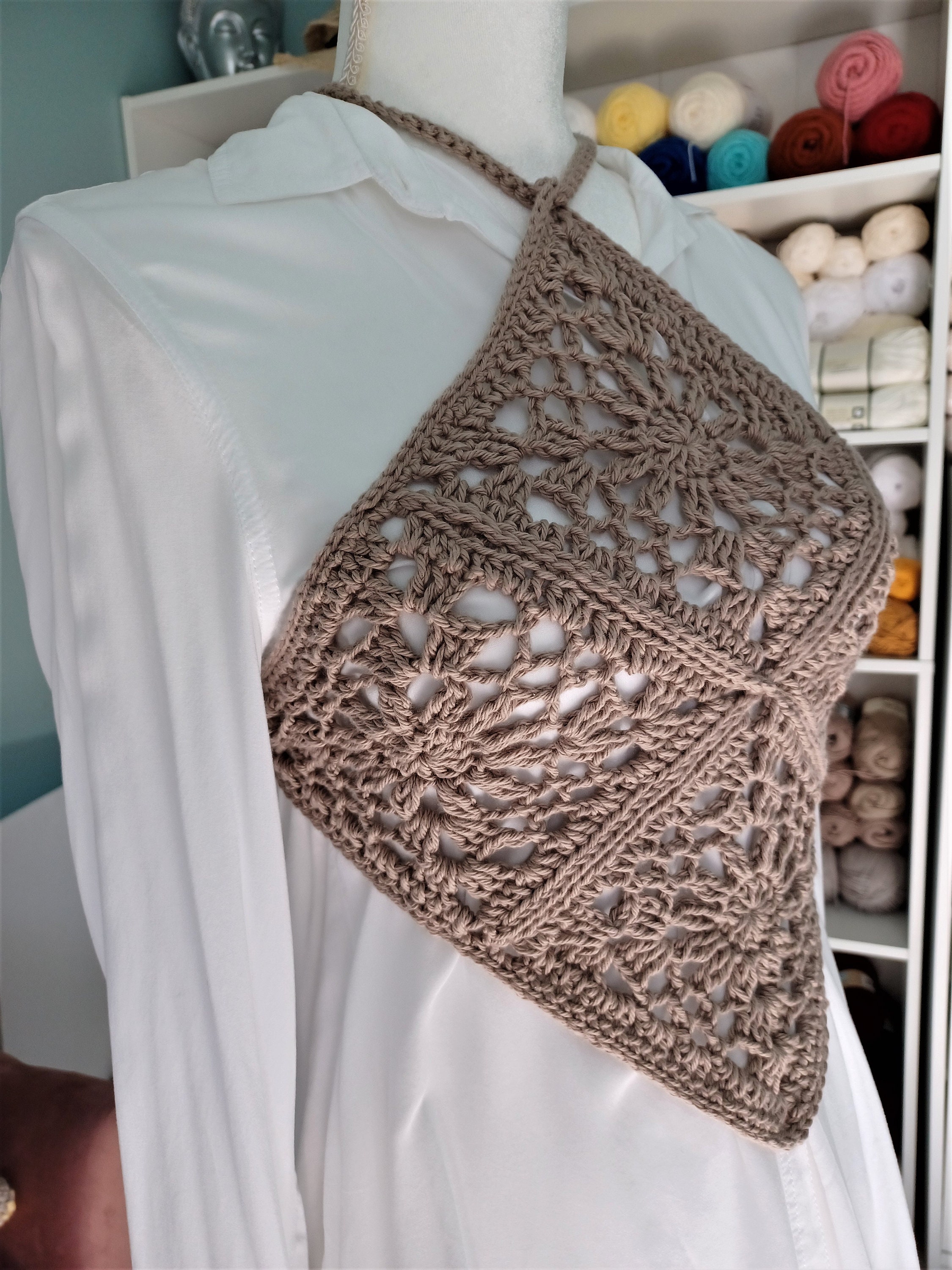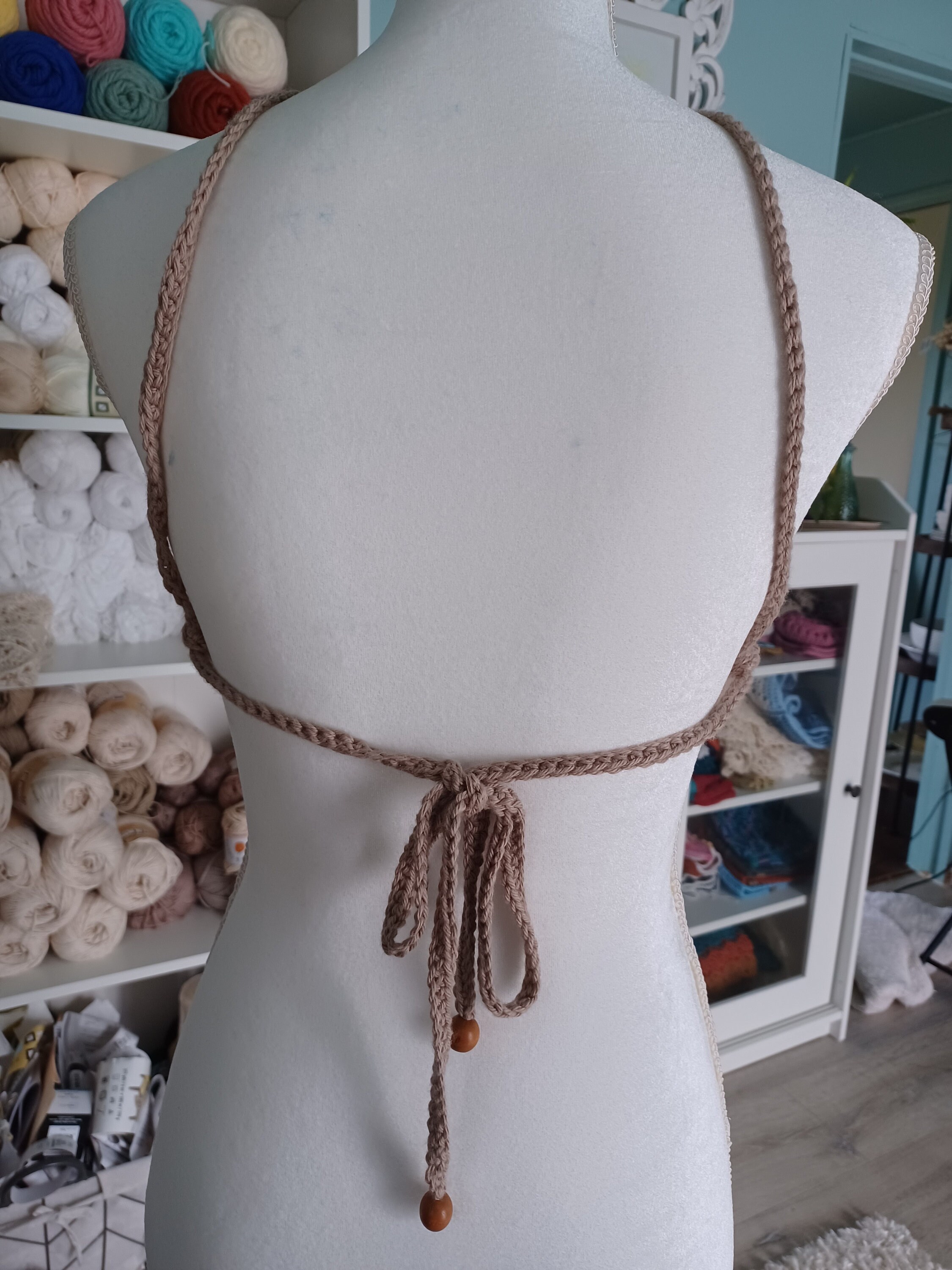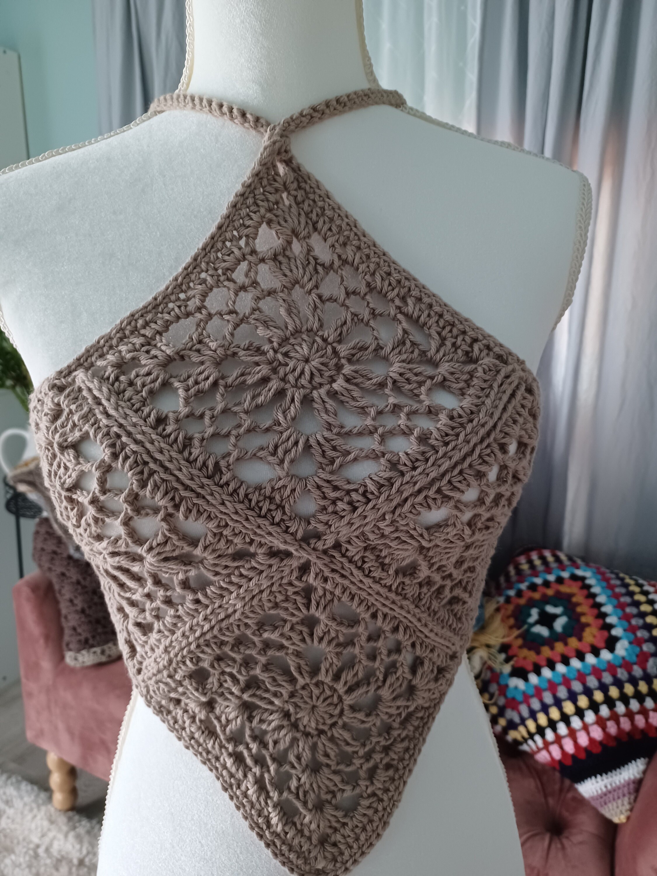 Expertly crafted with precision and skill, this hand-crocheted halter top features intricate lace details, making it a versatile and stylish addition to your summer wardrobe. Whether paired with a blouse or worn on its own, this crochet lace top is perfect for any warm weather occasion. This top is made with 100% soft cotton yarn.