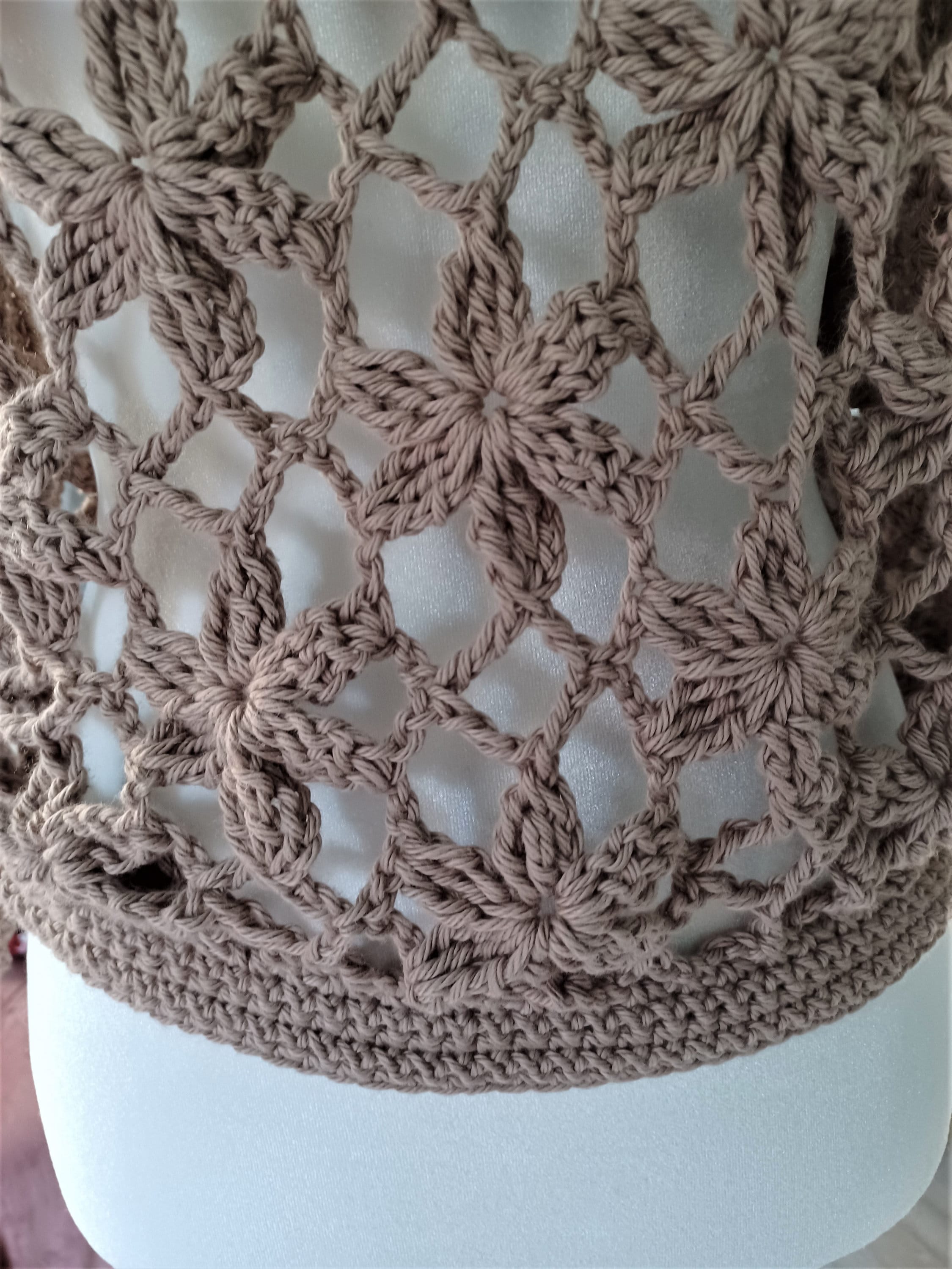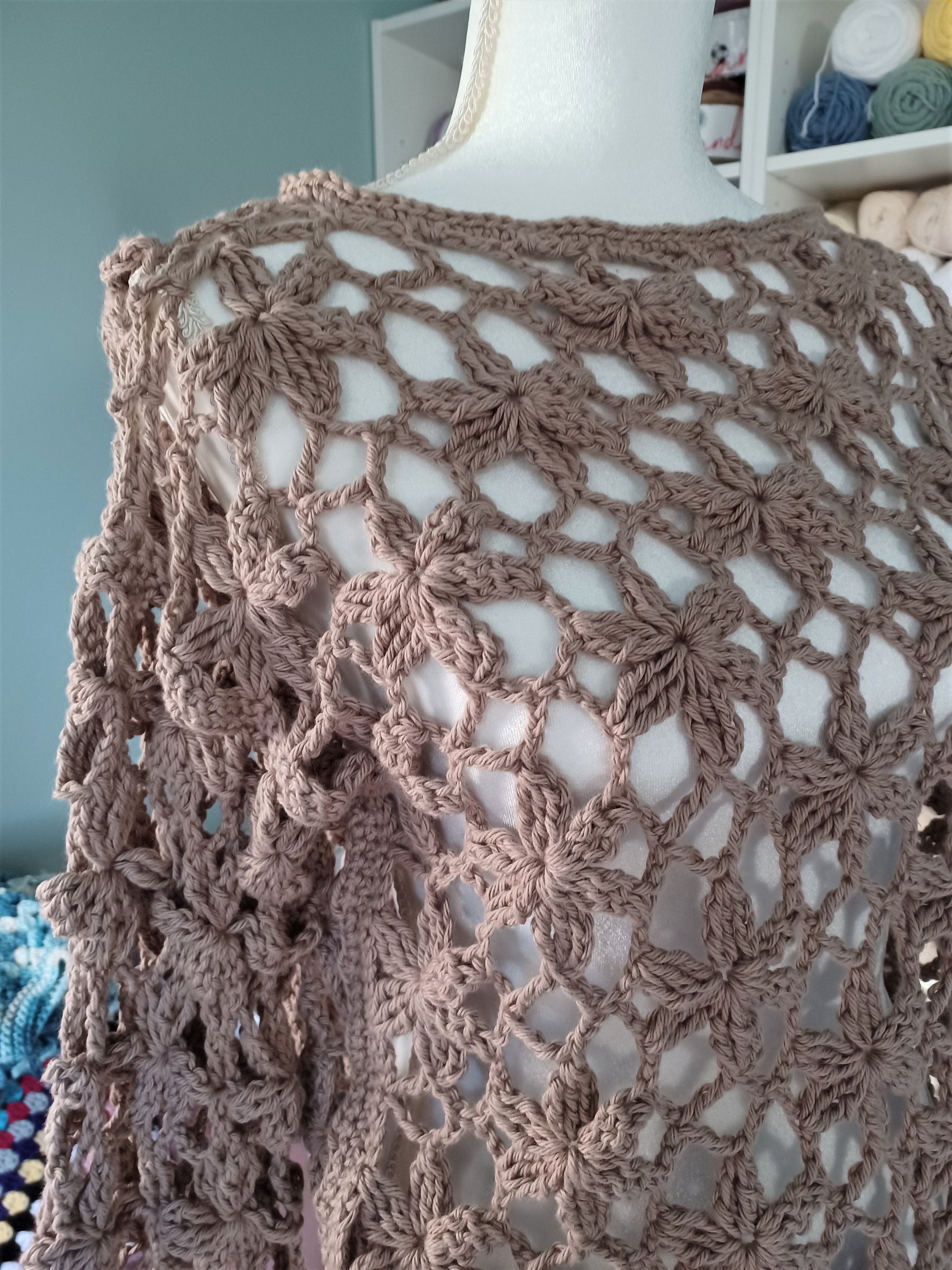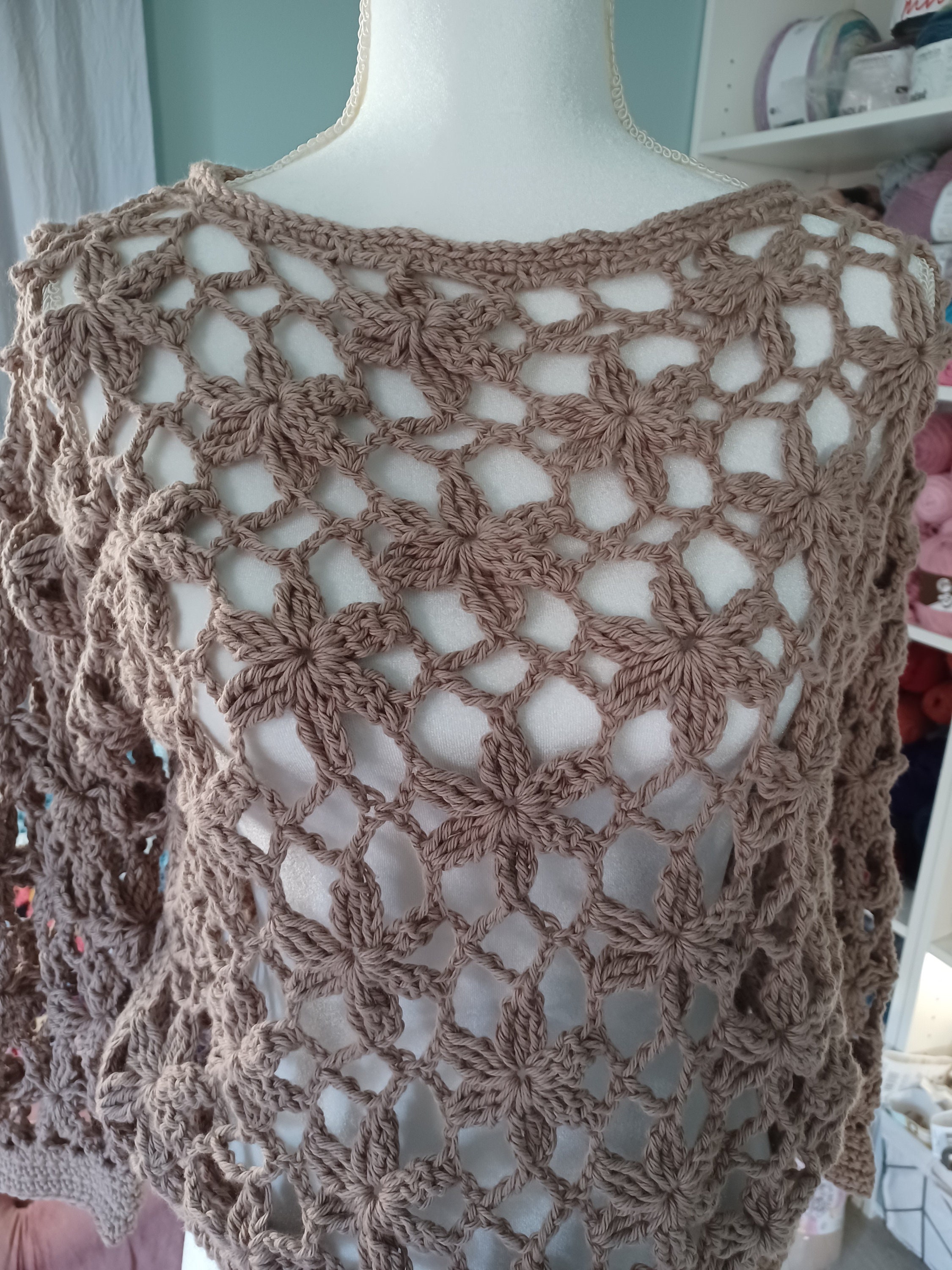 This handmade crochet floral lace design sweater top crafted from 100% soft cotton yarn features intricate floral motifs, delicate lacework, and a cozy yet breathable texture. The intricate detailing adds a touch of elegance, making it a unique and stylish garment perfect for various occasions.