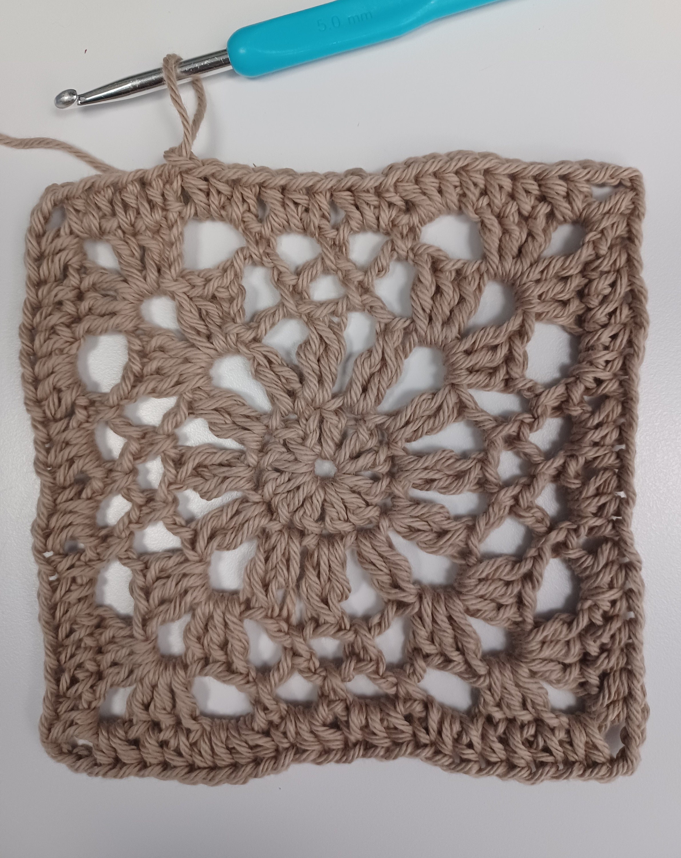 This pattern is written in one size. To make the top larger, add an additionalround or two to each square by repeating the steps from row 4, and finished withround 5 steps for final round.