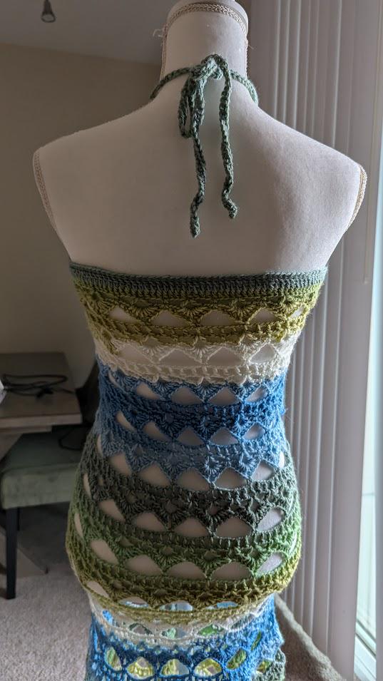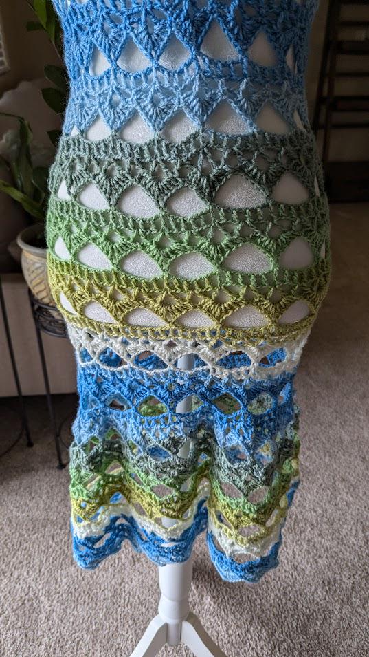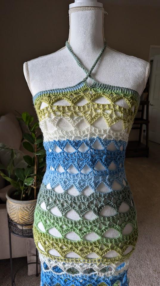 The "Seaside Serenity Dress/Skirt" is a beautifully handcrafted crochet piece that exudes effortless elegance and versatility. Featuring a stunning gradient of ocean-inspired colors, from soft greens to deep blues, this garment can be worn as either a dress or a skirt, making it perfect for a variety of occasions. The intricate lace-like pattern adds a touch of femininity, while the breathable design ensures comfort, whether you're strolling on the beach or attending a summer gathering. With its adjustable fit and delicate craftsmanship, this piece is both a statement and a timeless addition to any wardrobe.