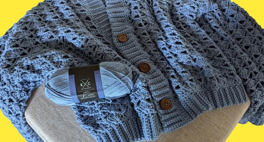 The cardigan is crafted with 100% cotton yarn, is designed for both comfort and style. The pattern is beginner-friendly and easy to follow, utilizing double crochet (dc) stitches and chain stitches to create a beautiful shell stitch pattern throughout the body and sleeves. The lightweight cotton yarn makes it perfect for warm-weather wear, while the open, airy shell design adds a delicate, feminine touch. The cardigan features a classic V-neckline with a ribbed button band, making it a versatile addition to any wardrobe.