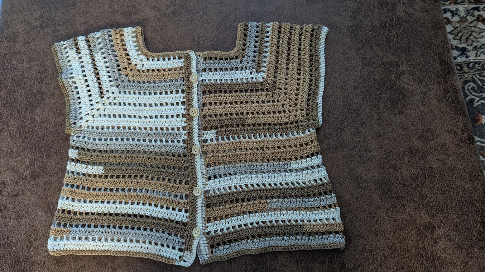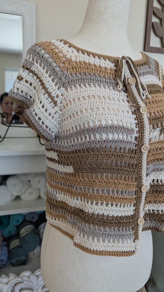 Meet my Mocha Stripes Crochet Top. Handmade with lover, this cozy button-front top features warm earthy tomes in mocha, cream, and taupe. Its breathable stitch design makes it the perfect layering piece for any season - light enough for summer evenings and stylish enough for fall days. Each piece is carefully crafted to be one-of-a-kind, bringing a timeless yet modern touch to your handmade wardrobe.
