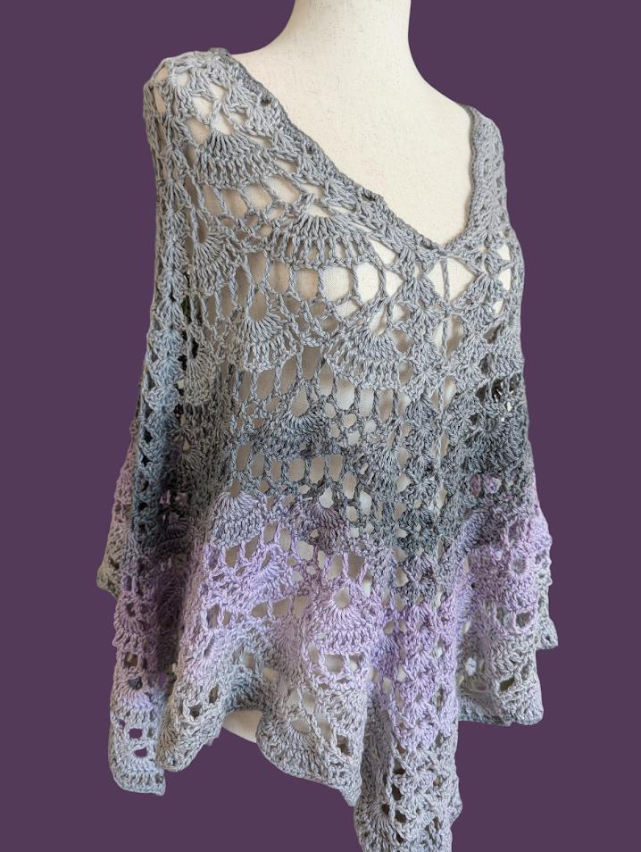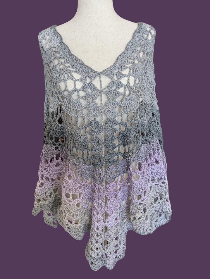 The Lavender Mist Crochet Poncho is a stunning piece of handmade artistry, featuring an intricate lace pattern with soft gradients of gray and lavender. The delicate stitching and flowy design create a light, airy feel that is perfect for layering over any outfit. Made from soft, breathable yarn, this shawl is comfortable for all-day wear, adding a touch of elegance whether you're heading out for a casual day or a special occasion. Its versatile one-size-fits-all design makes it a perfect addition to any wardrobe, offering endless styling possibilities.